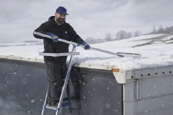Enteisungsleiter für LKW – robustes, leichtes Hilfsmittel zur schnellen und sicheren Entfernung von Schnee, Eis und Frost auf LKW-Aufbauten. Ideal für LKW-Fahrer und Fuhrparkmanager, um Fahrzeug und Ladung winterfest zu halten.